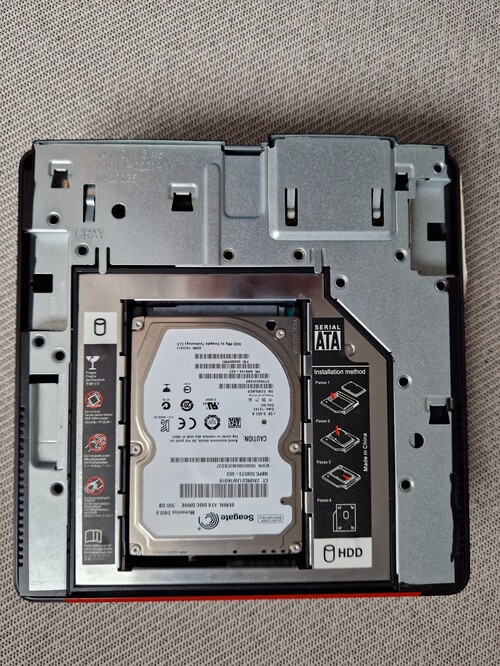 - A CD meghajtó helyett egy HDD case van 500 Gigás 2,5" merevlemezezel ami szektorhibás
