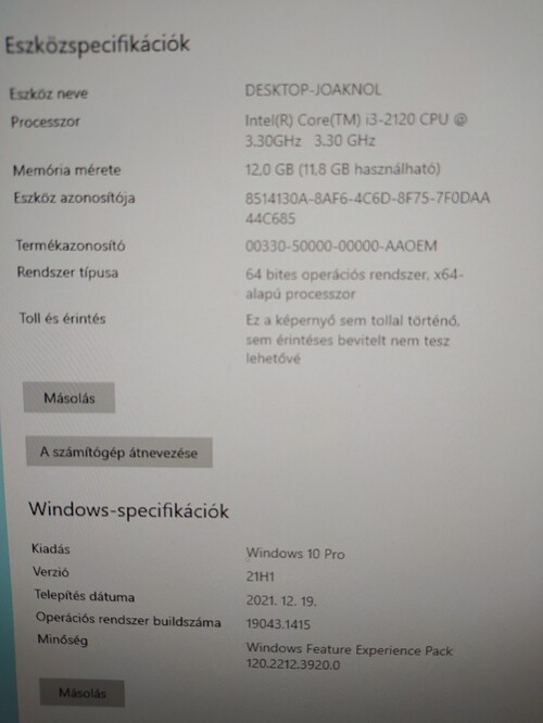 Windows 10 Pro frissen telepítve