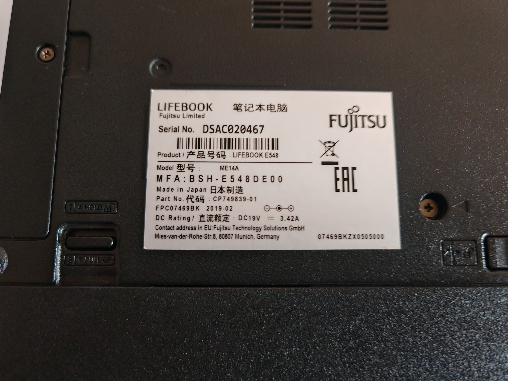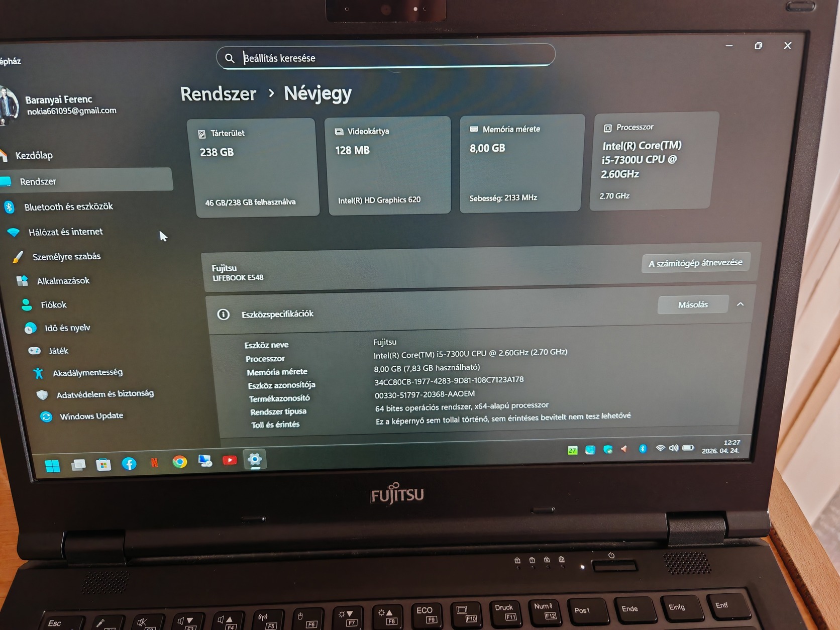 Eladó egy Fujitsu Lifebook E548 üzleti laptop.