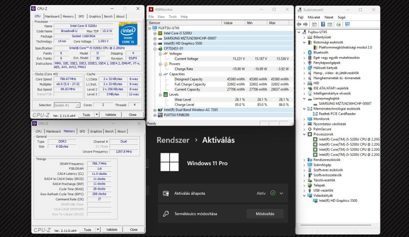 Frissen újratelepített Windows 11 Pro (aktivált), ingyenes Libreoffice telepítve, kívül-belül tiszta, a gép használatra kész.