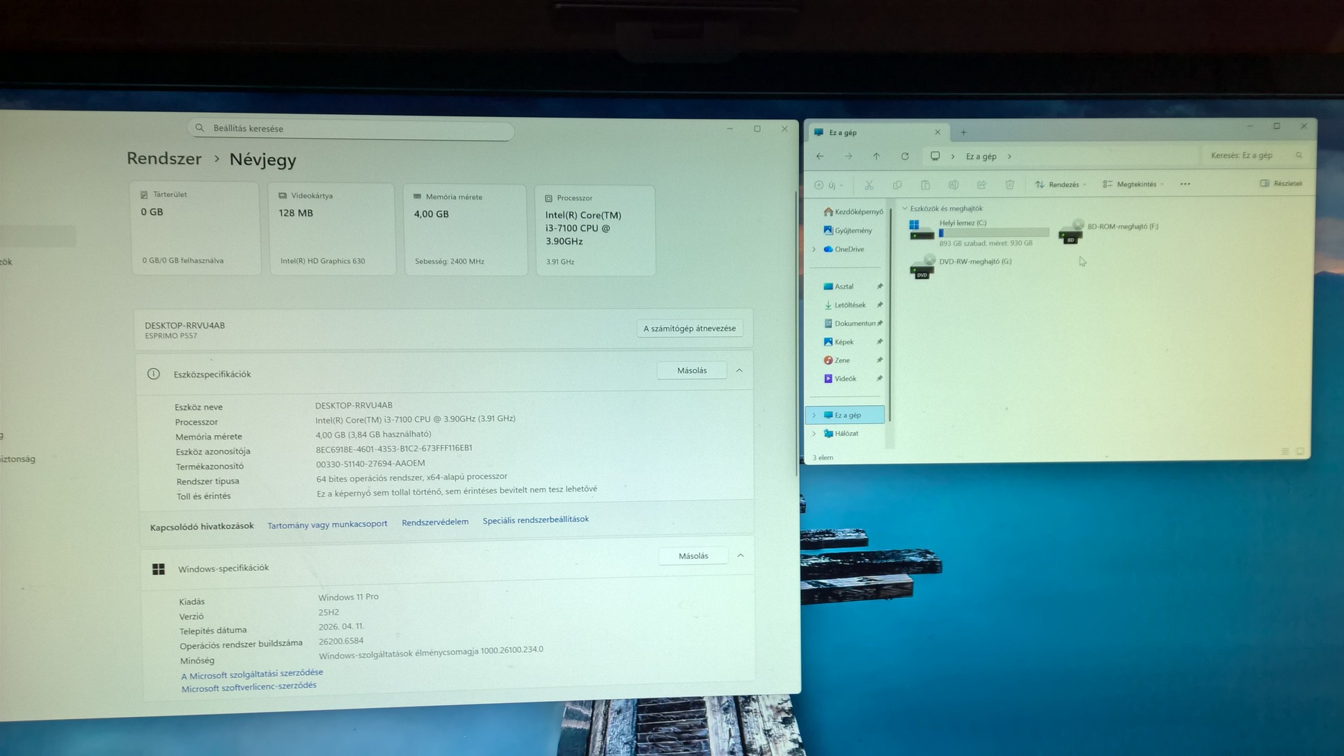 Legális Windows 11 Pro telepítve