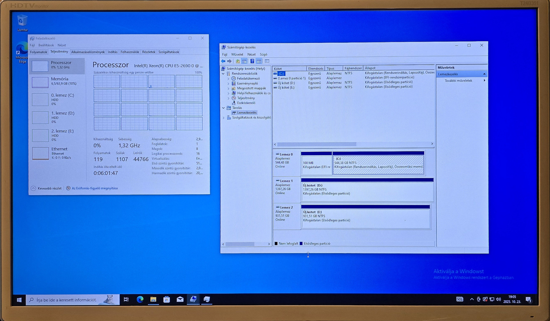 +ajándék 1TB éa 1.5TB HDD (11% és 89% Sentinel állapot)