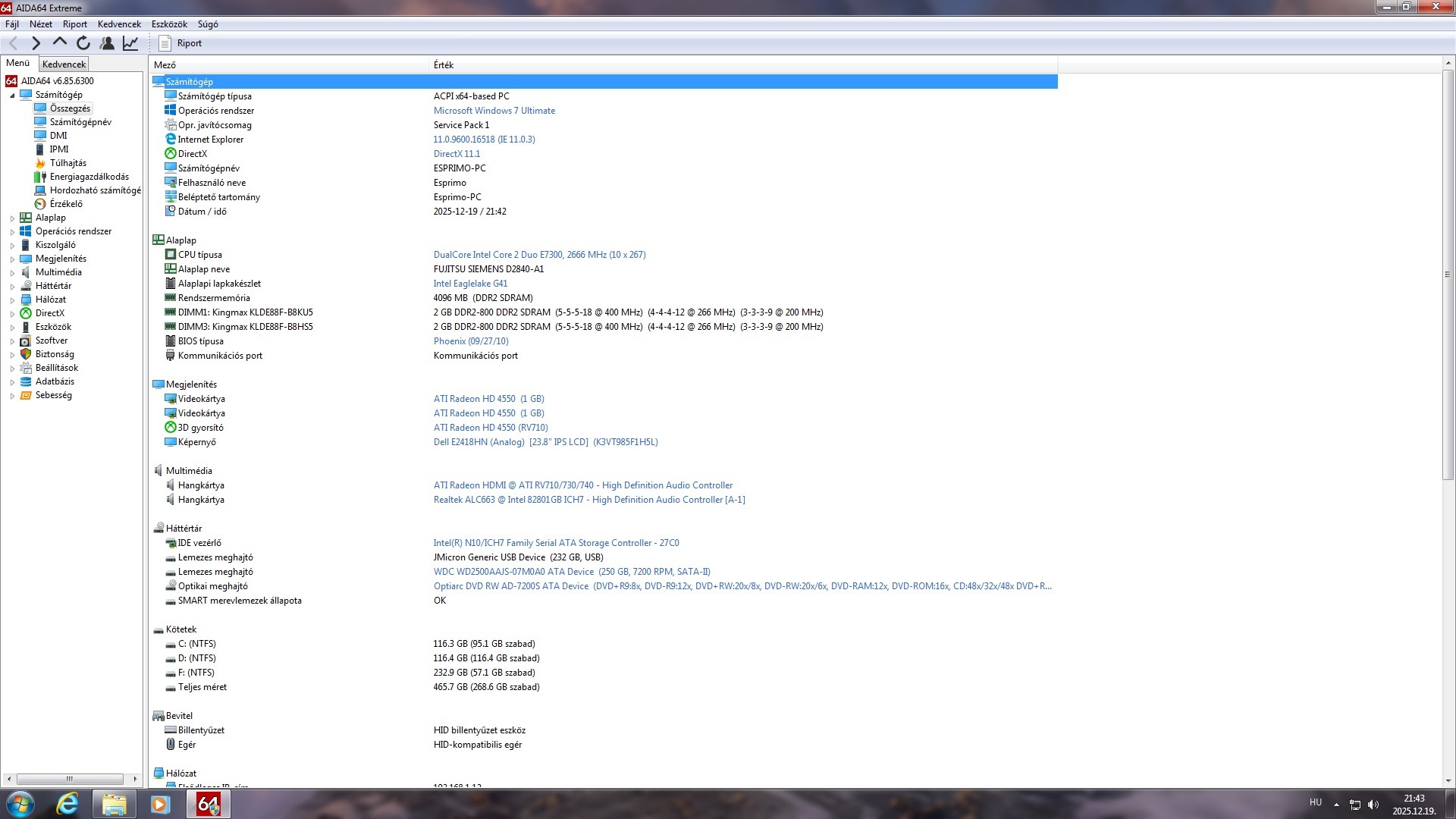 VGA: Radeon HD 4550 1 GB (DVI, D-Sub, HDMI kimenetek)