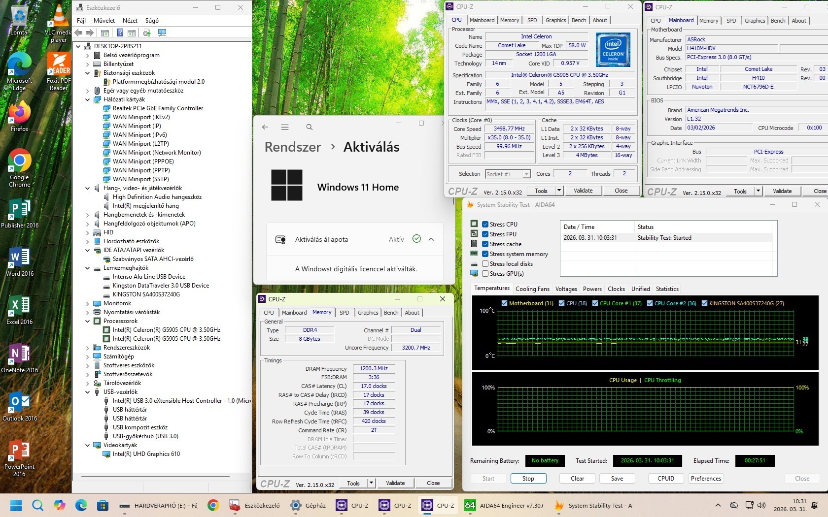 Fürge Celeron G5905 (4M Cache, 3.50 GHz, Intel UHD610) + gyári Intel alumínium hűtő