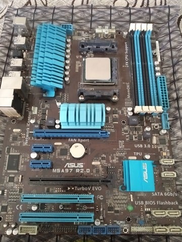 FX-6350 és egy ASUS M5A97 R2.0 alaplap (Cooler master toronyhűtő a procihoz).