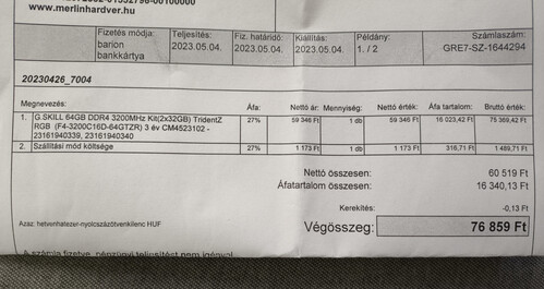 Eladó G.SKILL 64GB TridentZ RGB ram kit, 2026.05-ig garis merlinhardvernél.