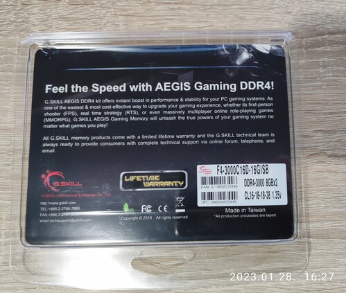 G.SKILL DDR4 Aegis 16GB (2x8GB) 3000MHz CL16 F4-3000C16D-16GISB