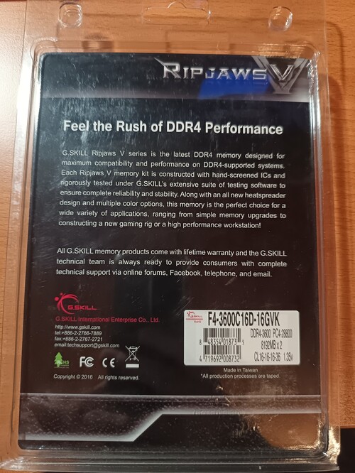 G.Skill Ripjaws V 2x8 GB KIT 3600MHz CL16!!! F4-3600C16D-16GVK