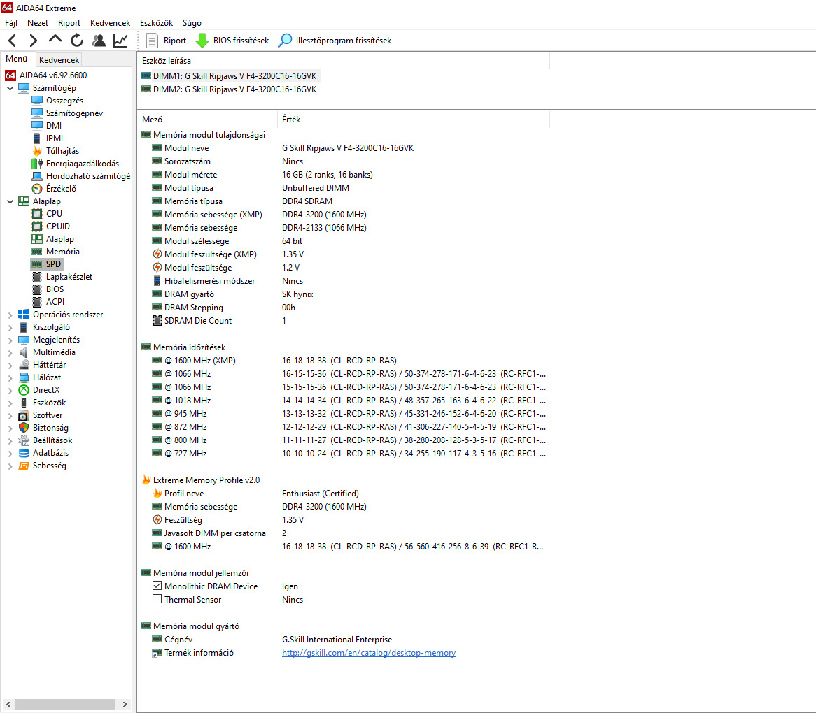 Jegelve – G.Skill Ripjaws V DDR4-3200 CL16-18-18-38 1.35V 32GB (2x16GB) F4-3200C16D-32GVK