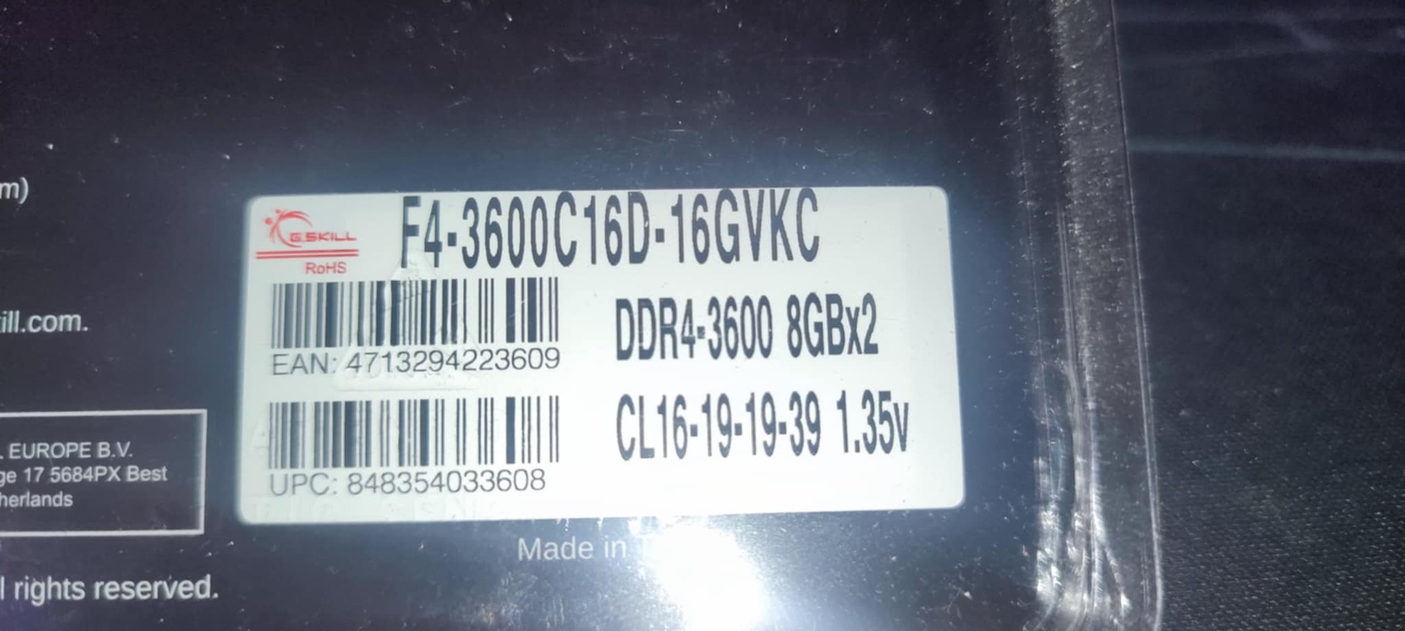 G.Skill Ripjaws V DDR4 3600 mhz 2x8gb kit