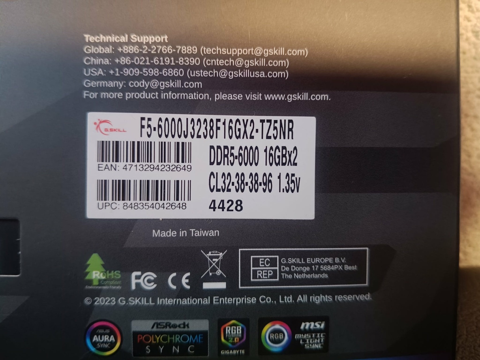 G.SKILL Trident Z Neo RGB 32GB (2x16GB) DDR5 6000MHz F5-6000J3238F16GX2-TZ5NR
