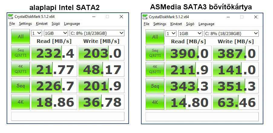 - Figyelem: mivel nem Intel SATA3 vezérlő van rajta (eddigi kutatásaim alapján nincs 1156 alaplap Intel SATA3-mal), hanem Marvell, ez azt eredményezi, hogy rajta keresztül egy mai SSD nem hozza az elvárt sebességeket, sőt még az Intel SATA2 is jobb nála. Ezért árulok hozzá plusz controller kártyát, amivel sokkal gyorsabb.