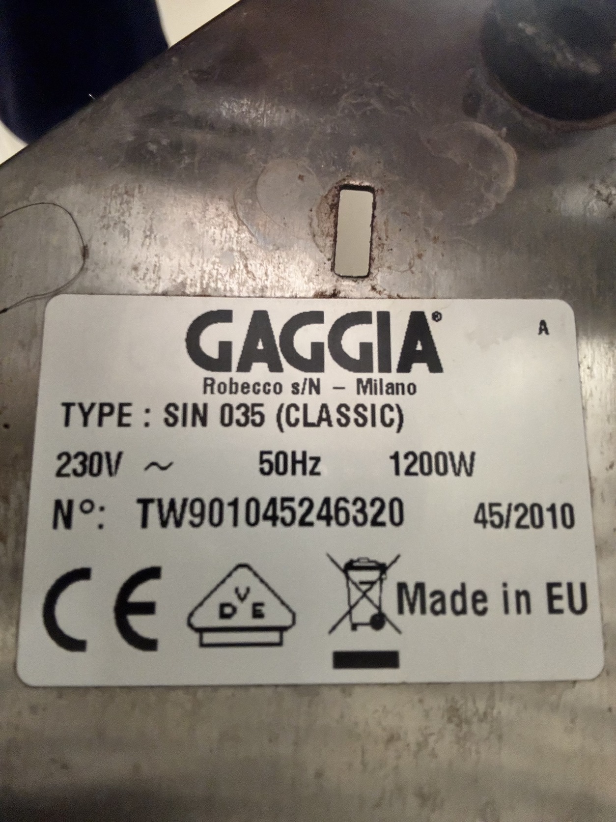 2010-es Gaggia Classic SIN035 modell, vagyis a háromutas szeleppel szerelt változat, funkcionálisan megegyezik a későbbi Classic Pro modellekkel.