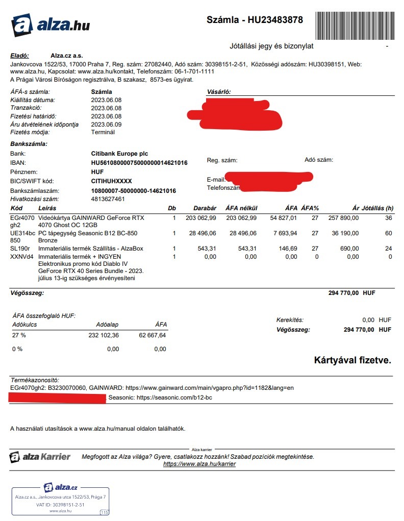 Jegelve – GAINWARD GEFORCE RTX 4070 Ghost OC 12GB - 6 hónap ALZA gari