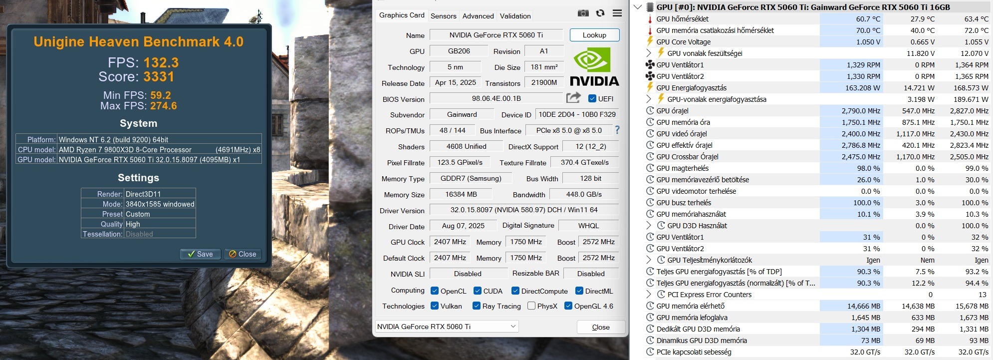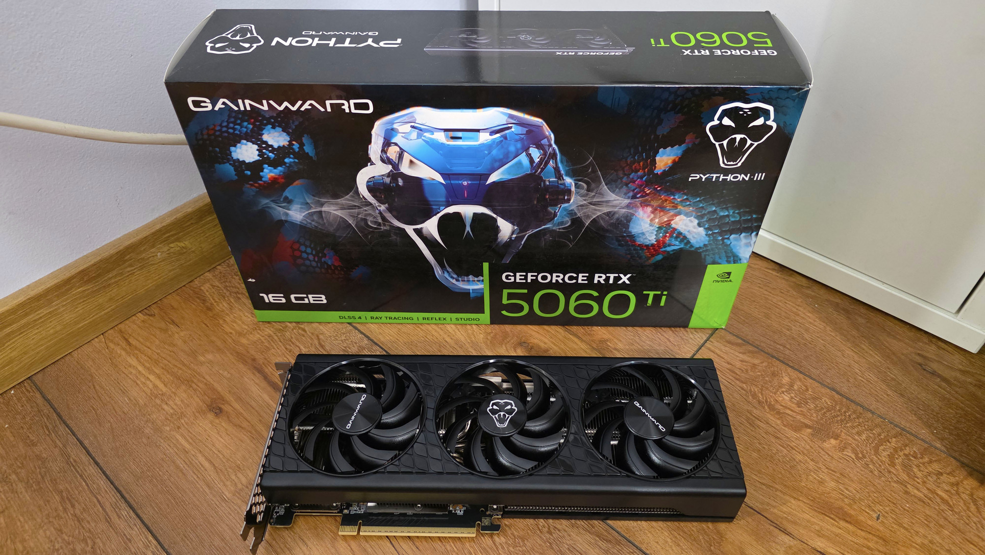 GAINWARD GeForce RTX 5060 Ti Python III 16GB videokártya gyári dobozában.