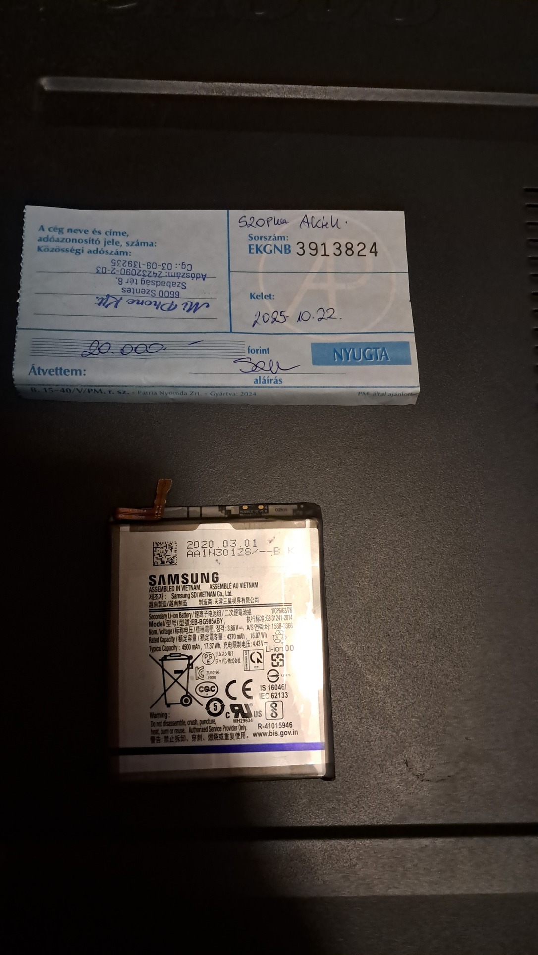 Új akkumulátor: 2025. októberi csere (számlával).