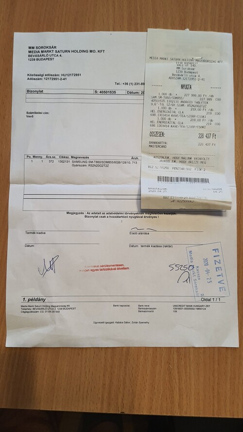 Galaxy TAB S6 128/6GB + eredeti samsung billentyűzet, GARANCIA