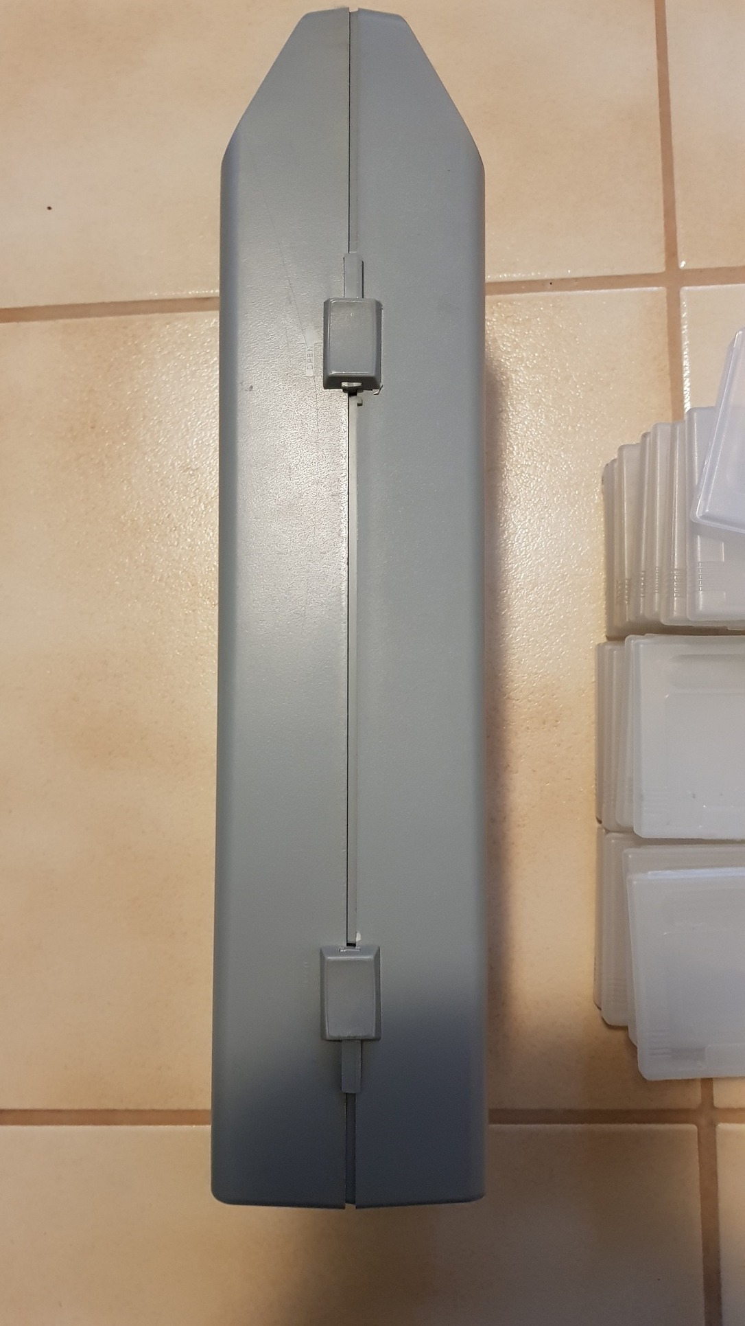 Hosszú szürke kemény műanyag eredeti hordtáska törésmentes ELKELT