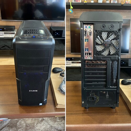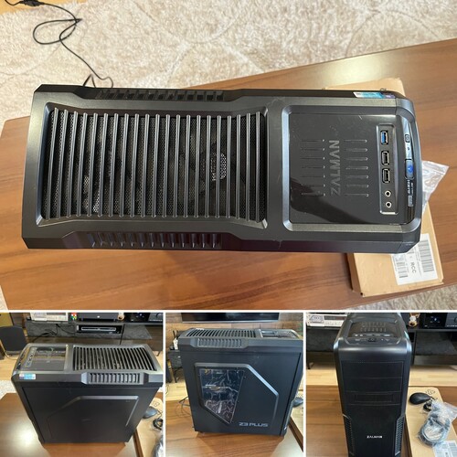 Ház: Zalman Z3 Plus, 4 ventivel szerelve. Kettő a tetején, egy a hátulján, egy kéken világító az elejében. Az oldallapon a plexin még a gyári fólia rajta van.