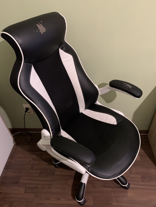 Eladóvá vált gamer székem nagyobbra váltás miatt. Pár éve használom, heti 7-8 órát max, több óra játék után is nagyon kényelmes. Esztétikai állapota nem hibátlan, a műbör 1-2 helyen elkezdett lekopni mint a képen is látszik, illetve a fehér festék, de ezek alig láthatóak, használatban természetesen nem befolyásol semmit!
