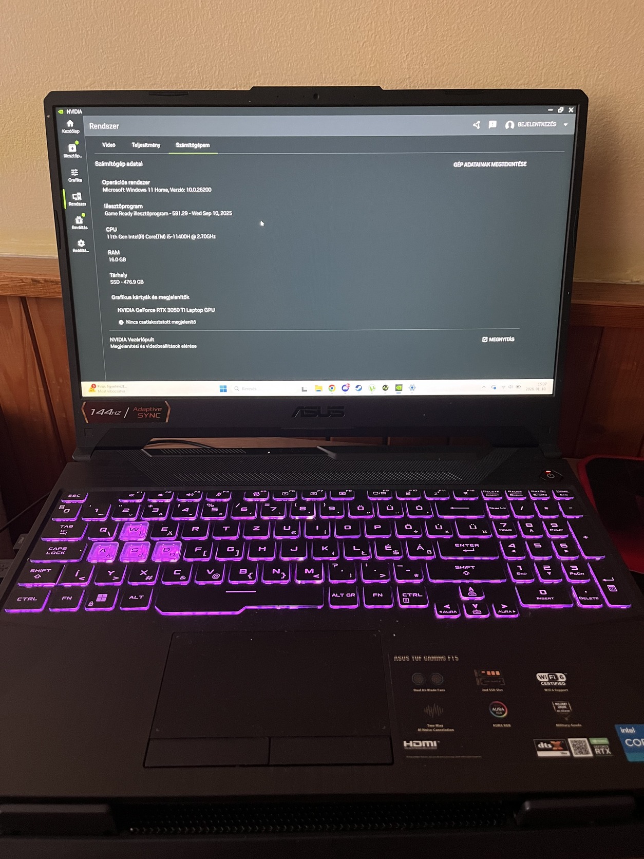 Kijelző: 15,6" Full HD, 144Hz