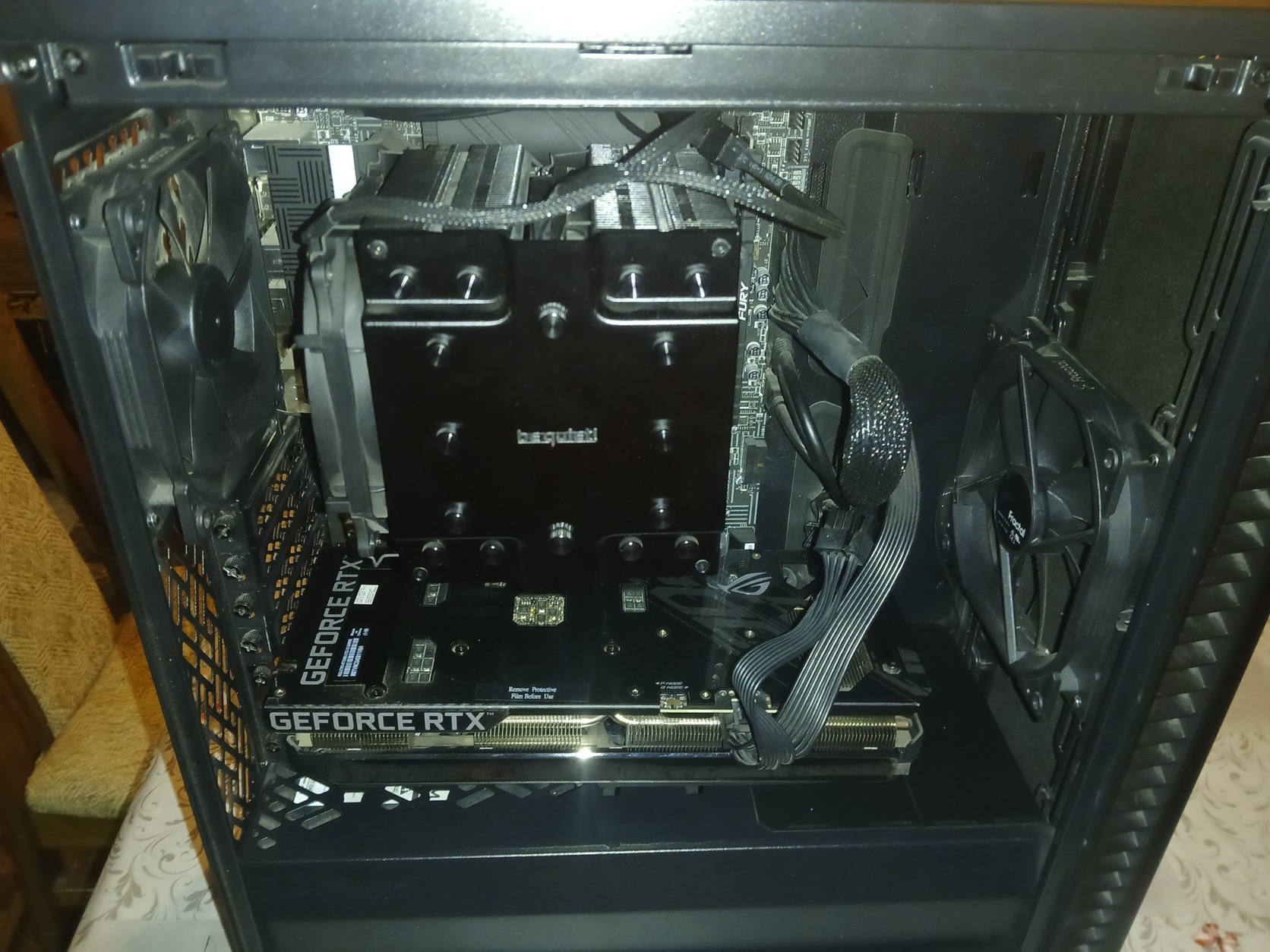 Összesen: 64 GB RAMVideokártya: ASUS ROG GeForce RTX 3060 ROG STRIX O12G – 12 GB GDDR6Tároló: Samsung 980 PRO 1 TB NVMe M.2 (PCIe) – villámgyorsHűtés: be quiet! Dark Rock Pro 4 (csendes, prémium léghűtés)Tápegység: Corsair TX-M Series TX750M V2 – 750 W, modulárisGépház: Fractal Design Define 7 Compact – feketeOperációs rendszer: Frissen telepített Windows 11 Pro