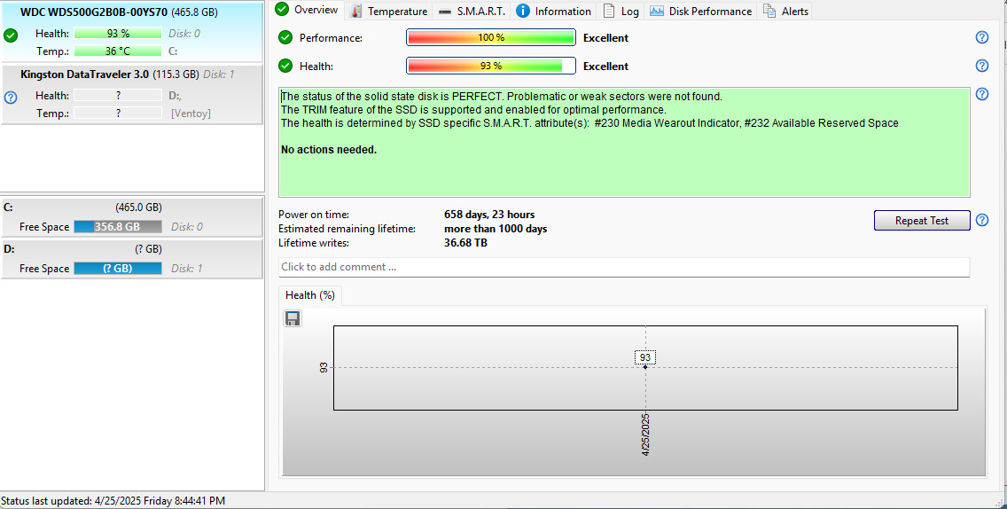 SSD: WDS500G3B0B (93/100)