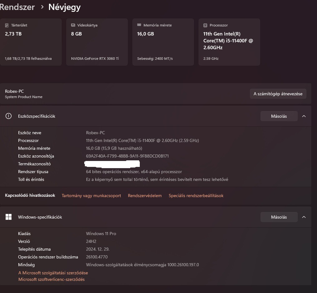 Processzor 11th Gen Intel(R) Core(TM) i5-11400F @ 2.60GHz (2.59 GHz)
