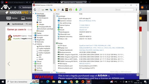 CPU: Intel i7 7700 be quiet nagy torony hűtő van rajta