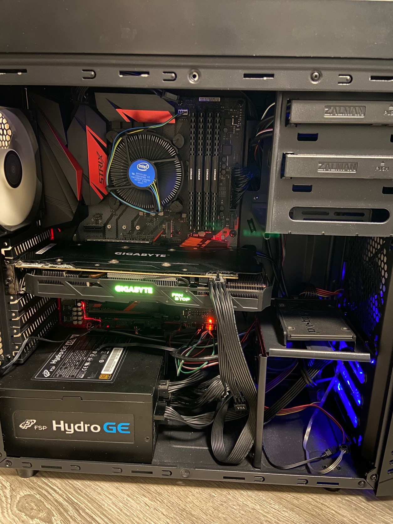 Intel I5 @ 2,8 GHz, 4x4GB 2400mhz Corsair VENGEANCE RAM, ASUS Z370-H gaming alaplap, nvidia GeForce gtx 1060 3 gb videókártya, 223Gb SSD.