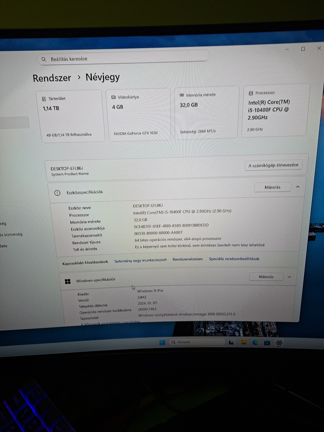 Deepcool tesseract bf gephaz, Intel core i5 10400f processzor,Ram G.SKILL Aegis sorozatú DDR4 32 Gb 3200mhz , nvidia gtx 1650 4Gb, táp Zalman ZM600- LX Il típusú, 600 wattos 80plusos Hdd:1Tb Ssd:Kingston A2000 250 GB-os M.2 NVMe SSD