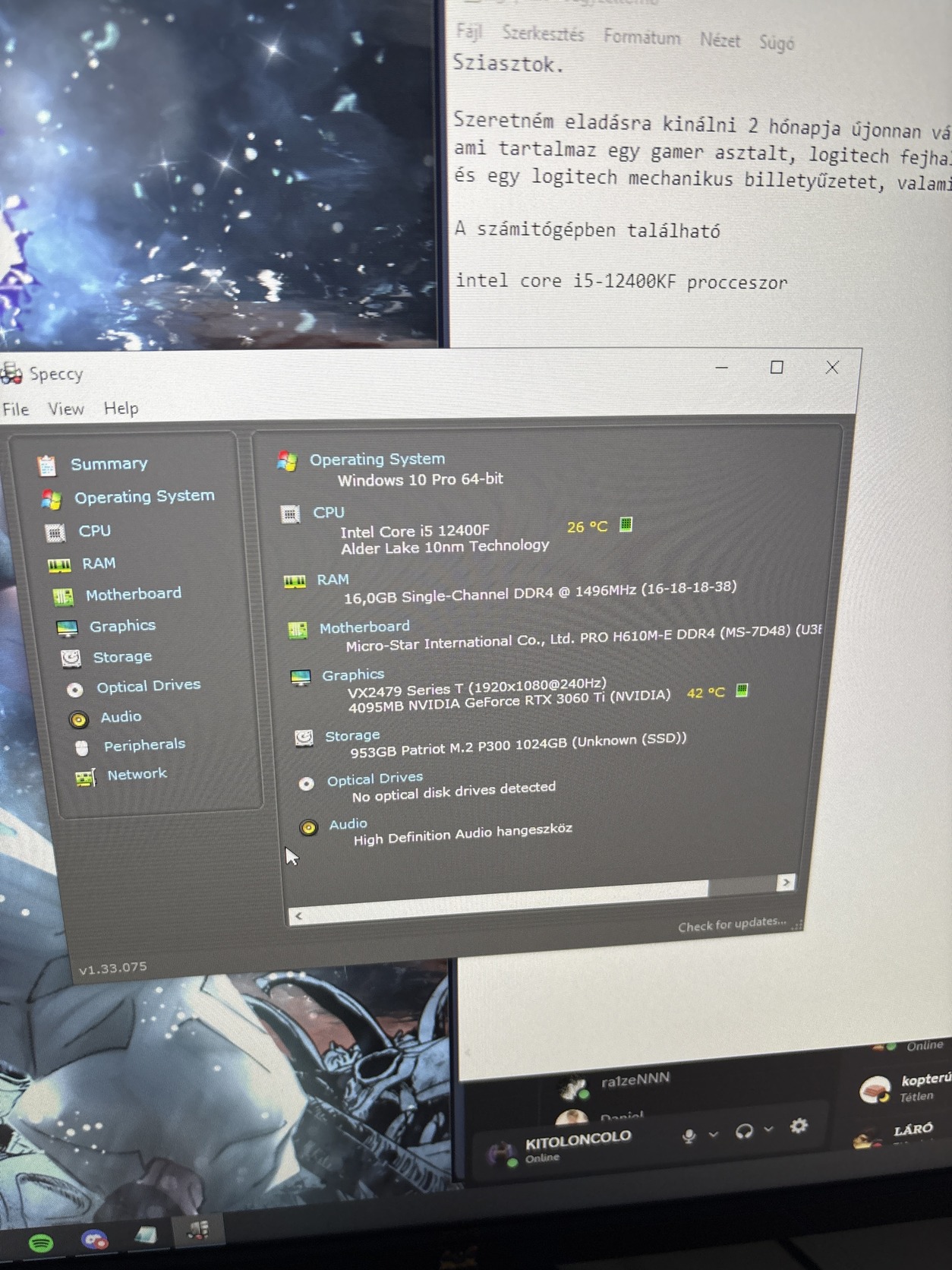 Szeretném eladásra kinálni 2 hónapja új alkatrészekből vásárolt asztali számitógépem és hozzá a tartozékokat