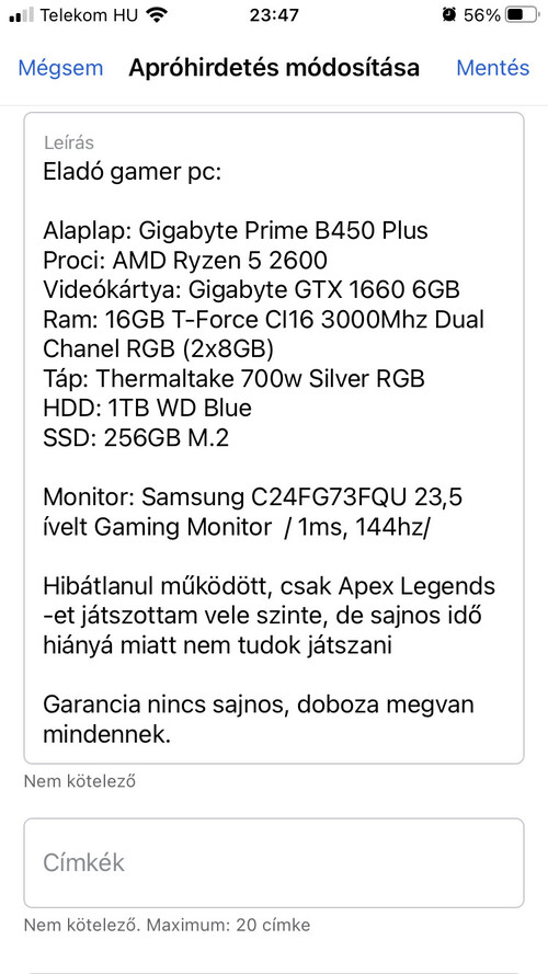 Eladó gamer pc-m