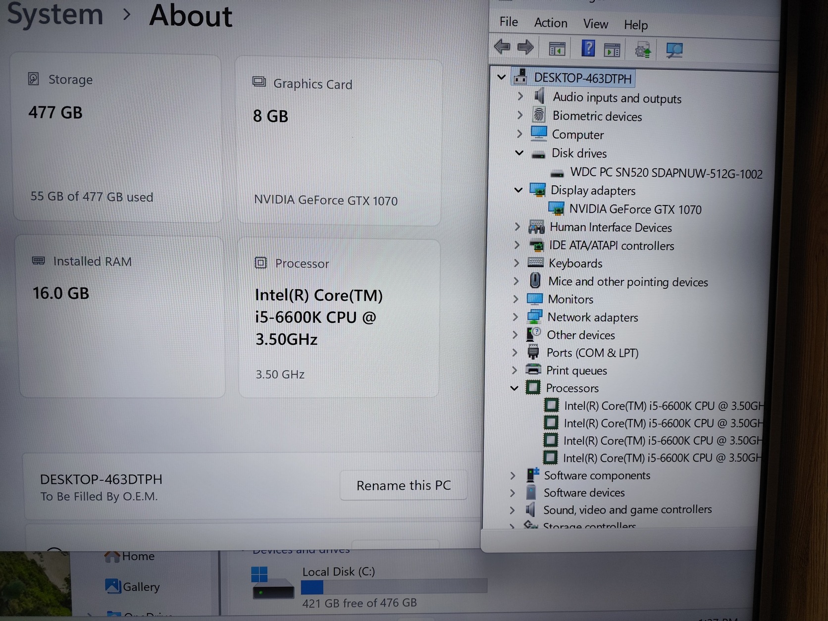 Gamer PC i5-6600K,Asrock Z170,16GB DDR4,512GB SSD,Asus GTX 1070 8GB, 650W Enermax Gold,Phanteks ház