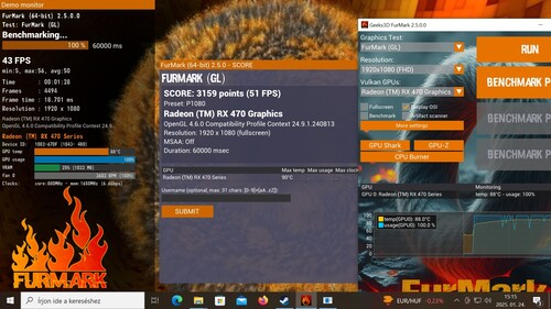VGA: RX 470 4 GB 1 db DVI kimenet (1db DVI- HDMI átalakító)
