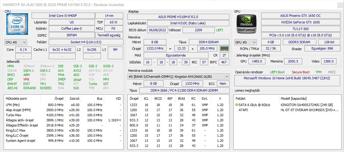 • Videókártya: ASUS Phoenix GTX 1650 OC – 4 GB GDDR5