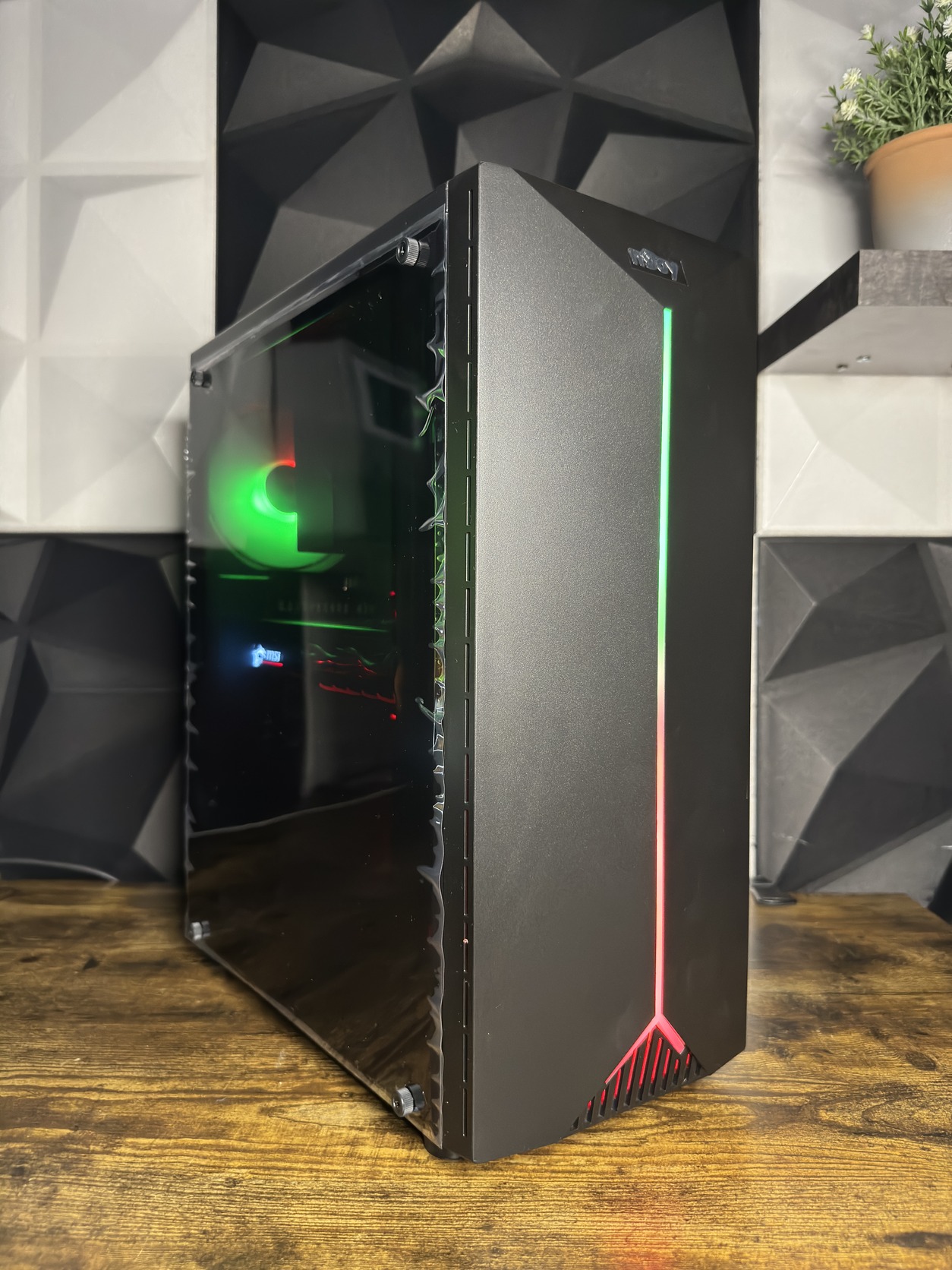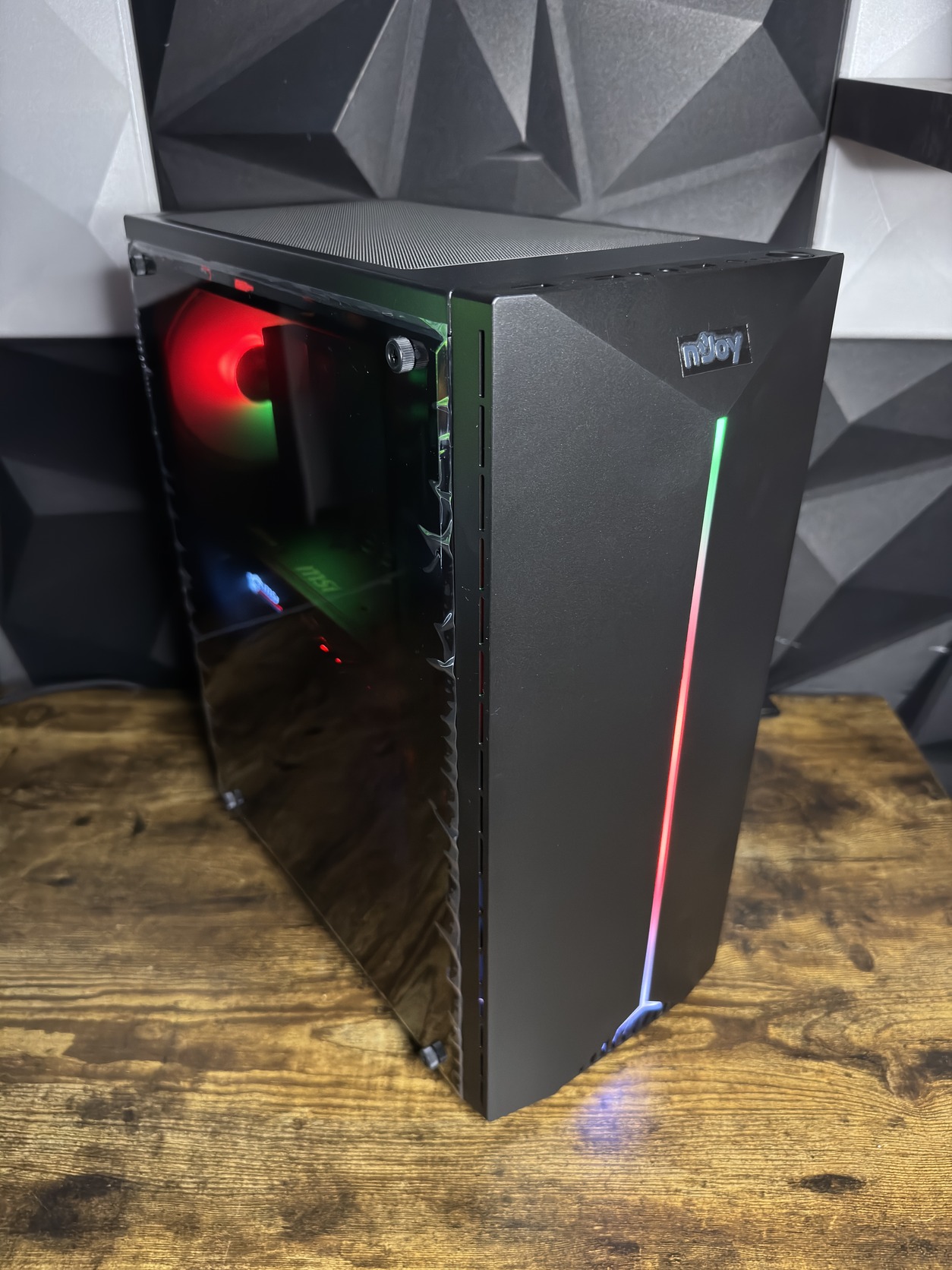 HÁZ: Njoy Anil ATX plexi ablakos, 1 db 12 cm RGB ventivel, elül RGB led csíkkal (Új, 2 év gari)