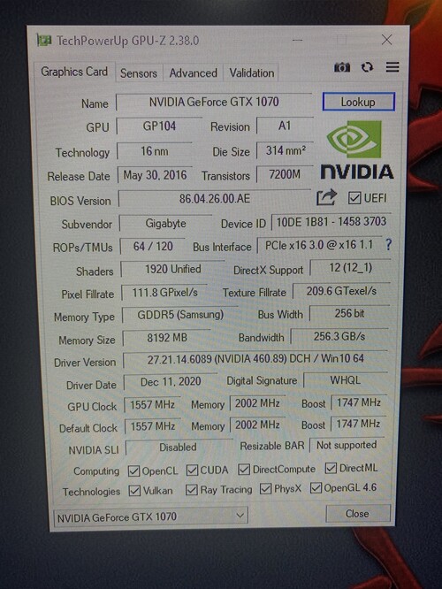Videókártya: Gigabyte Gtx 1070 8 gb
