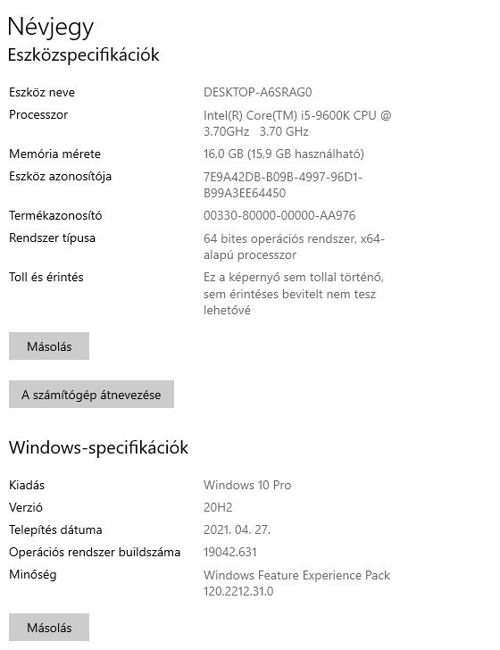 Eladó garanciális I5-9600K, MSI b365m Pro-vhd, 16Gb ram, 500 M2 Samsung Evo 970, Akyga ház, Chieftec 500. Nem tört windows, csak telepítve volt. Gari: táp: 2023.02.09, proci, alaplap: 2024.04.22, ssd: 2024.01.22, ram: 2026.05.16 Átvétel: Táborfalva, Dabas, vagy csomagküldés, postai díjszabás szerint.