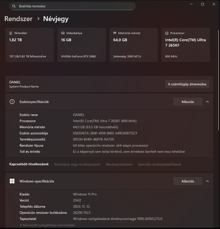 GARANCIÁLIS! Intel Ultra 7 265KF+Asus RTX5080+64GB 6000Mhz RAM+2x1TB Nvme SSD+Asus ROG B860F Wifi7