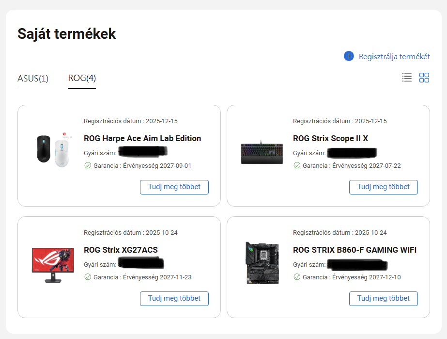 • Egér(24 hó garancia): ASUS ROG Harpe Ace Aim Lab Edition