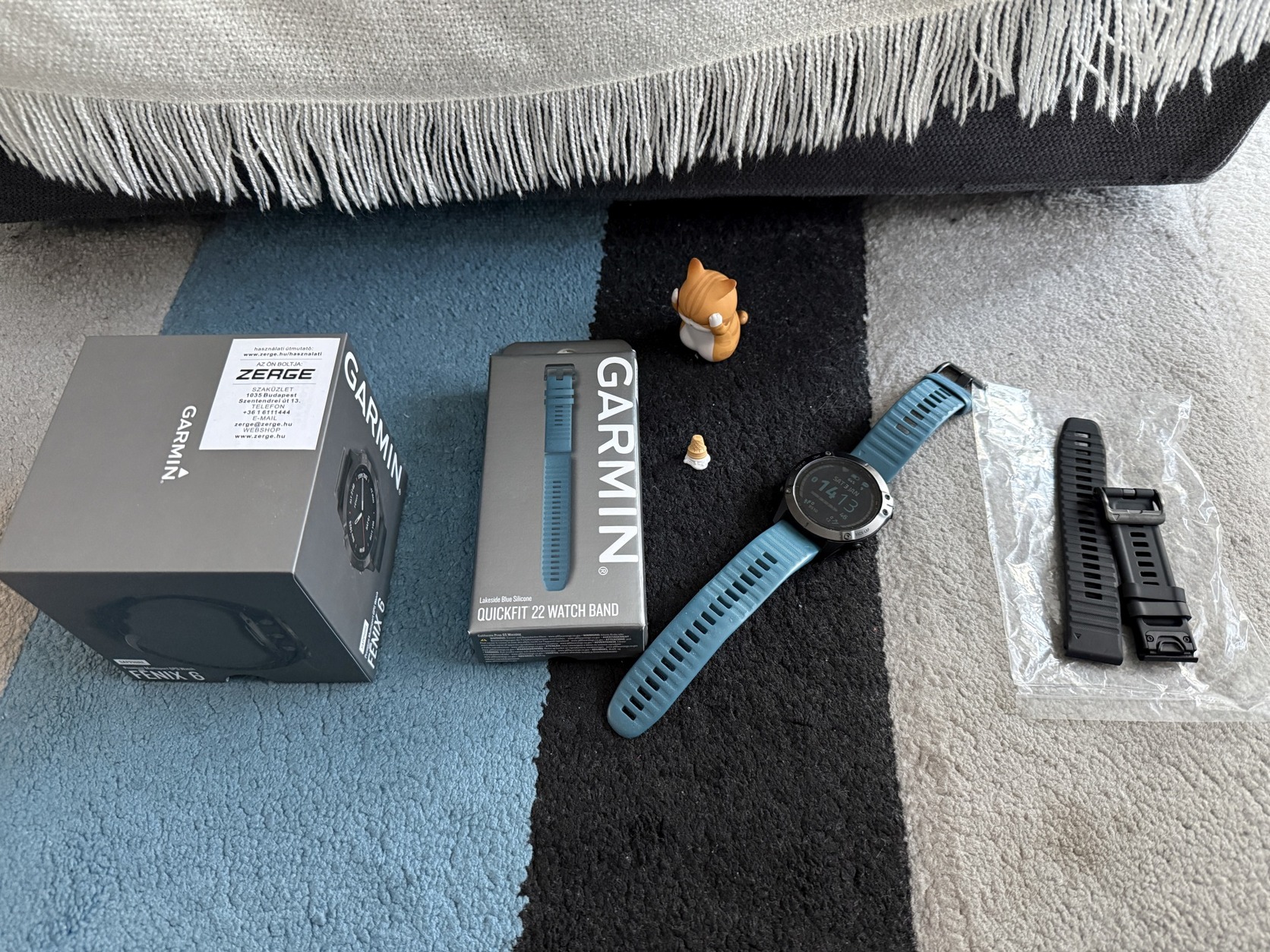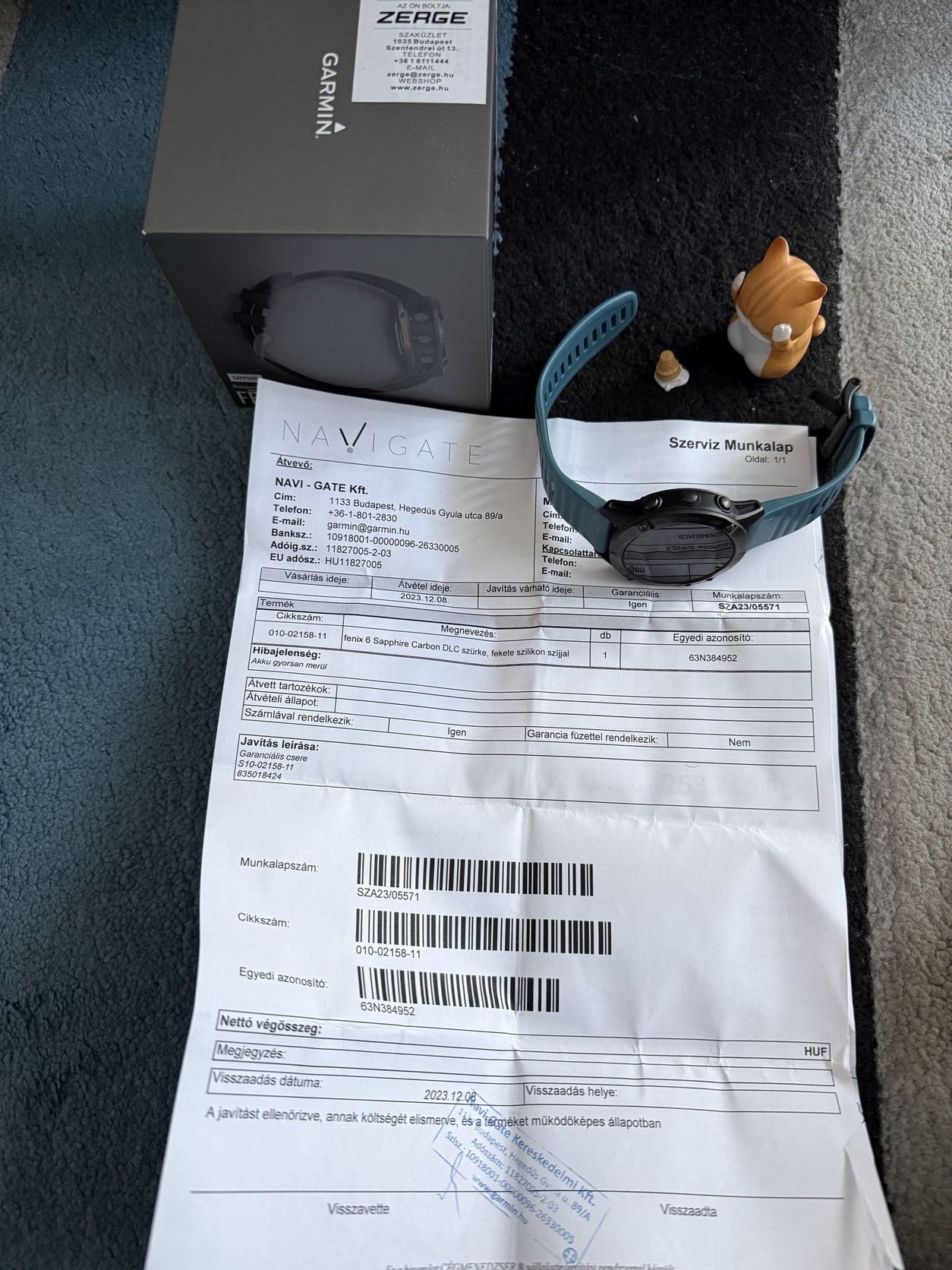 Az órát még 2023 decemberében garanciában cserélték, így mindösszesen alig két éves. Az órához természetesen jár minden, amit vásárláskor kaptam hozzá, sőt adok hozzá egy teljesen új, sosem használt gyári szíjat is.