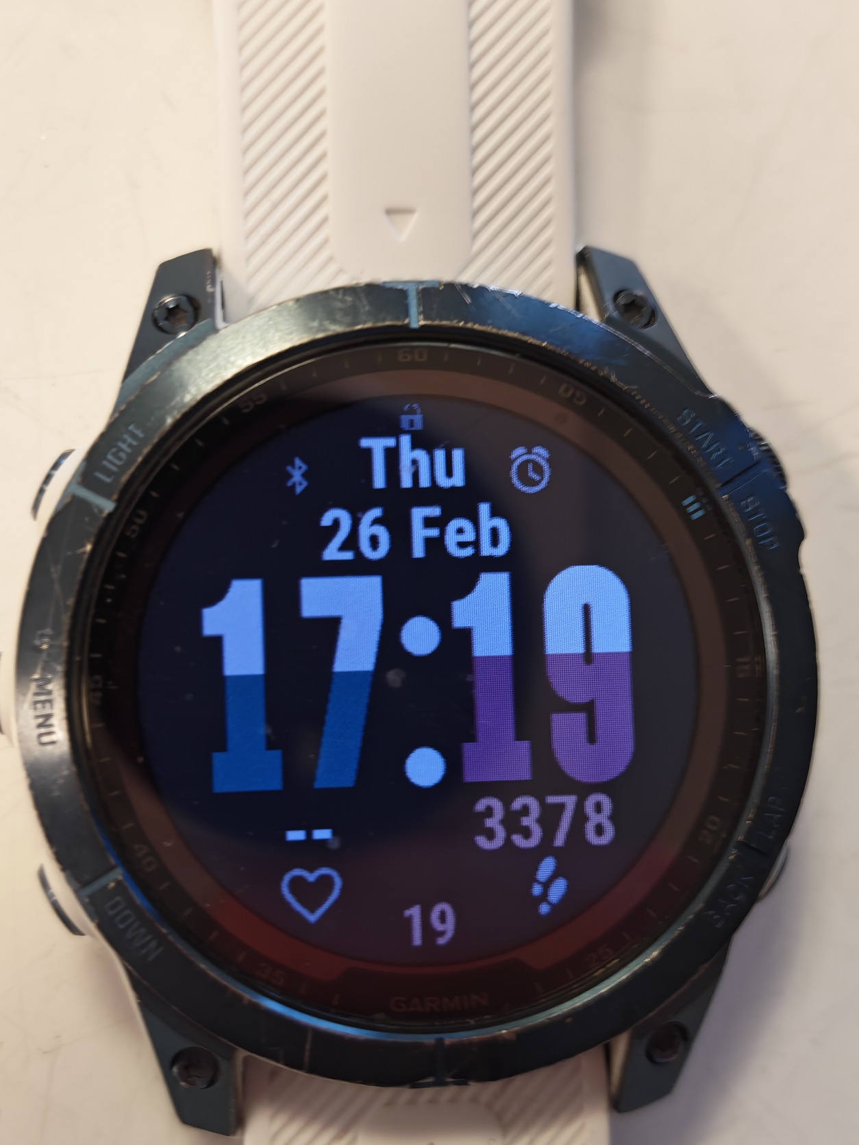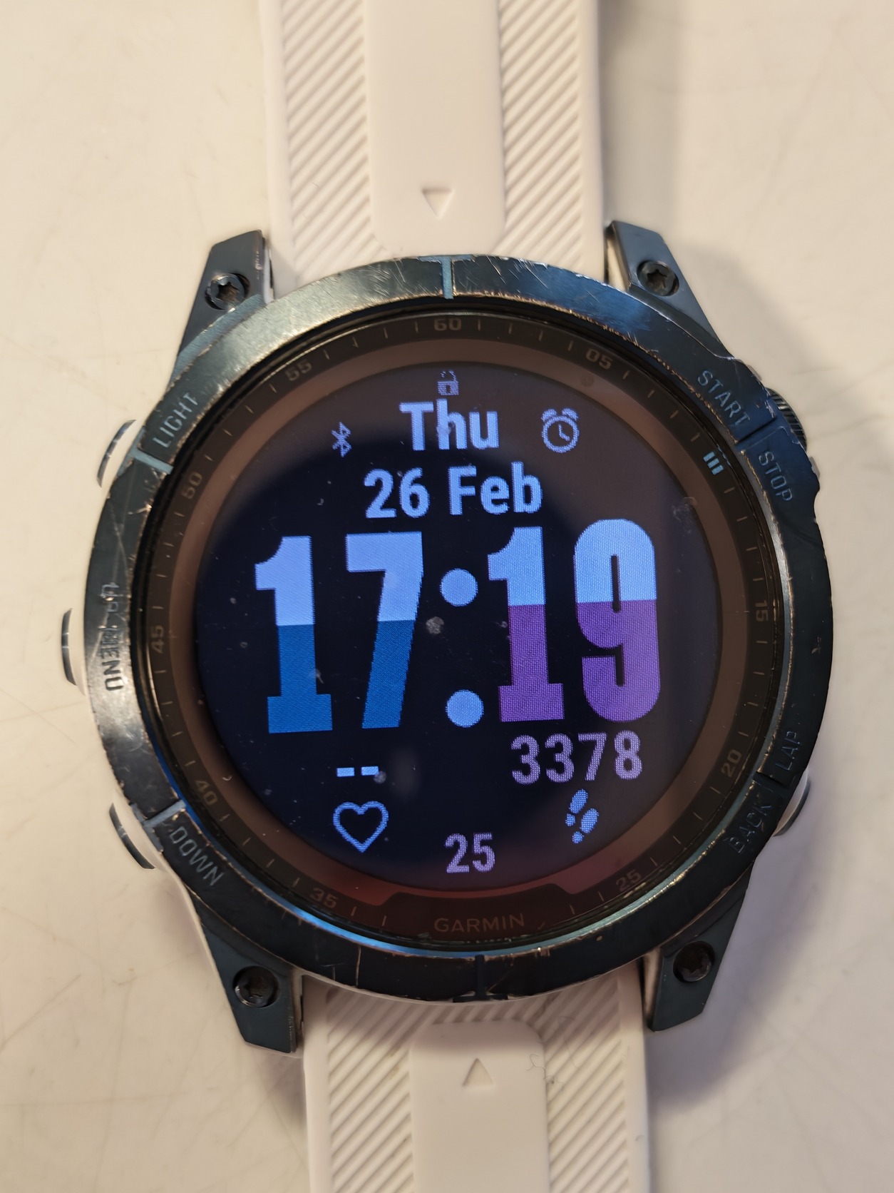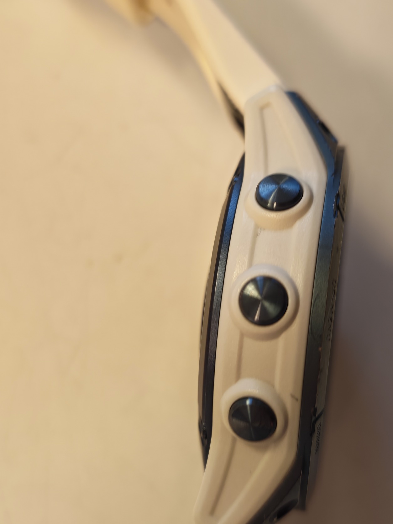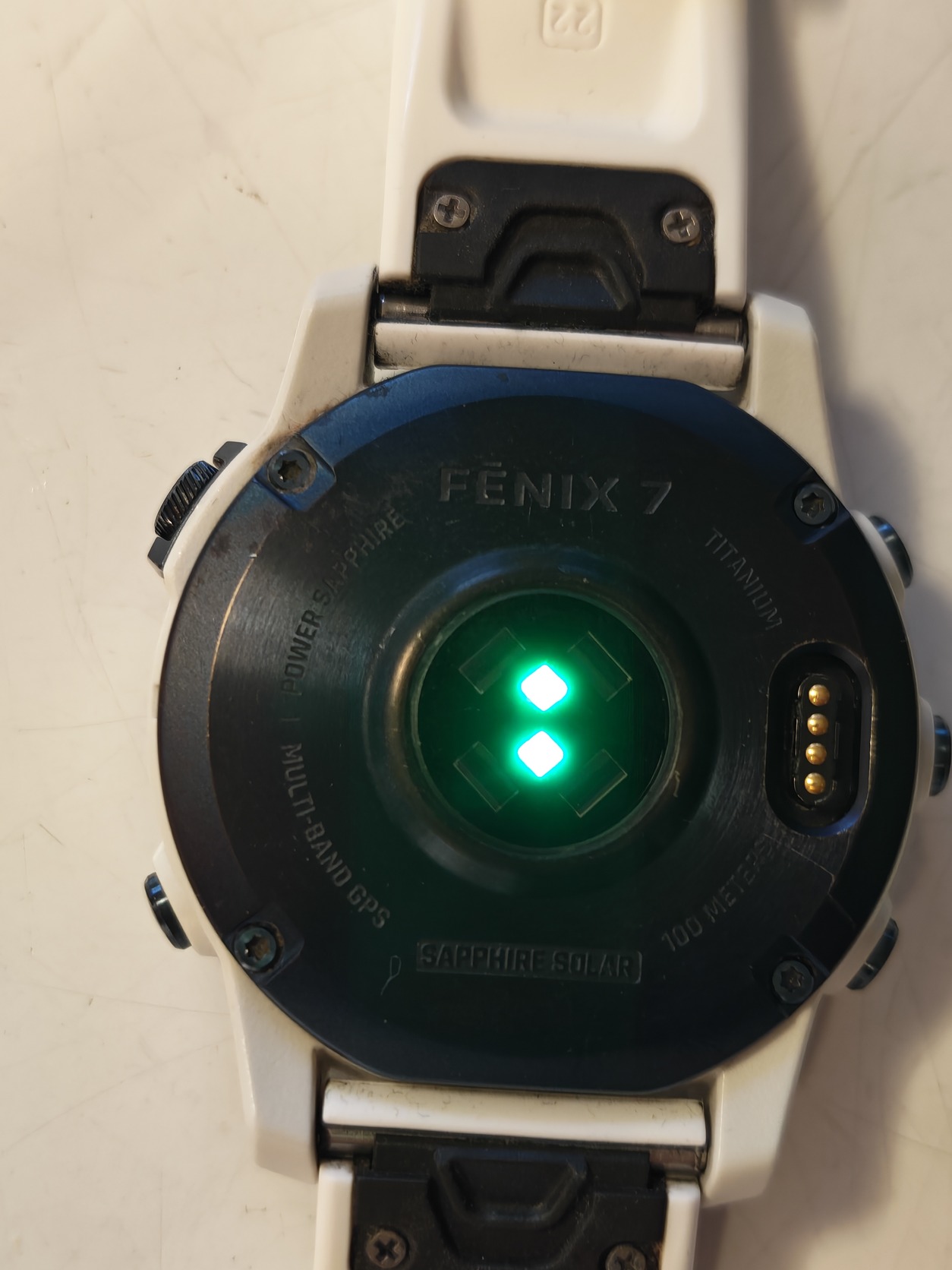 🔹 Állapot: Teljesen működőképes, hibátlanul teszi a dolgát. A Power Sapphire zafírüveg kiváló állapotban van. Kérlek vedd figyelembe: a kék titán kereten a mindennapi használatból és a szabadtéri tevékenységekből adódó látható esztétikai kopások, karcok és horzsolások találhatók (kérlek, nagyíts rá a képekre a pontos állapotért). A fehér szíj jó, használt állapotú.