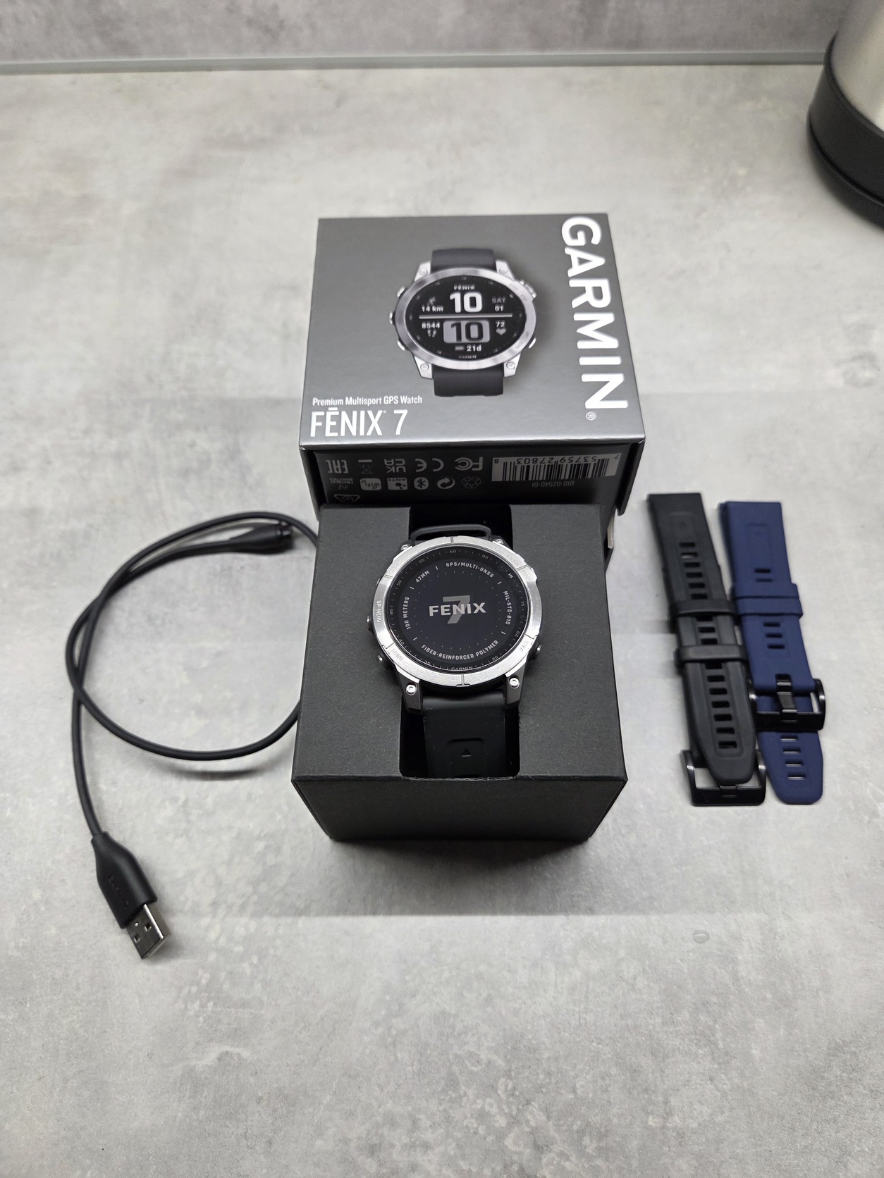 Az első tulaja vagyok az órának. Újszerű állapotú, kvázi karcmentes a fém, a gyári sötétszürke szíját sosem használtam. Általam rárakott üvegfólia védi a kijelzőt, ez is karcmentes, az érintéskezelést nem befolyásolja. 2024. júniusban váltottam Fenix 7 Pro-ra (azóta is ezt használom). A sima 7-est megtartottam mert vizuálisan jobban néz ki szerintem a világos káva miatt, bőrszíjjal egy jobban "megjelenősebb" óra inghez-zakóhoz stb., de végül nem nagyon volt ilyesmi célra sem használva munkahelyváltás miatt. Azóta a szekrényben csücsül.
