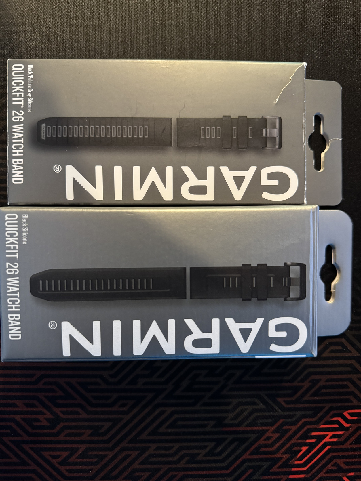 Dobozban, gyári taktikai és szilikon szíjjal (egyik sincs szakadva, bőven ahsználhatóak), + egy USB C-s töltőkábellel.