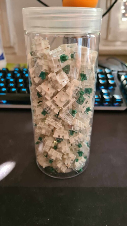 Eladó a képen látható 110db Gateron G Pro Green kapcsoló. Gyárilag zsírozott, 3 pines, clicky kapcsoló.