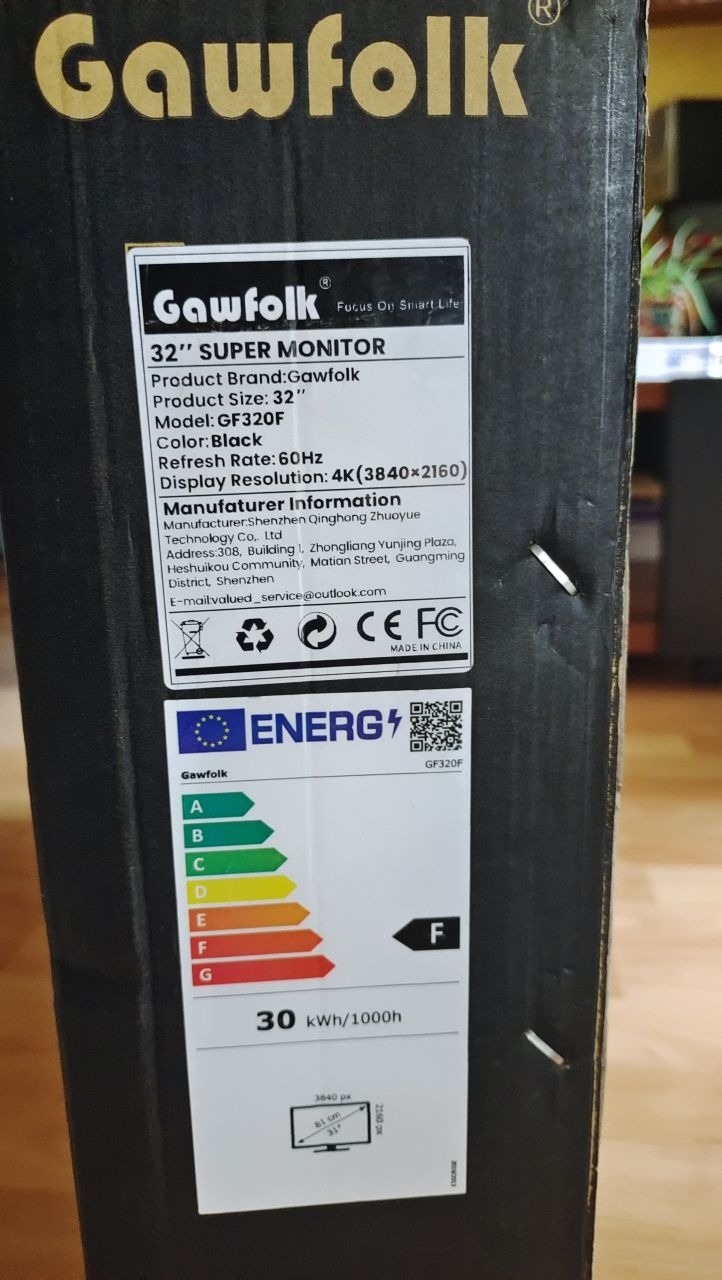 Eladó egy csak kipróbált Gawfolk GF320F 32" UHD (3840x2160) monitor. 2 HDMI, 2 DP, 1 audio out port.