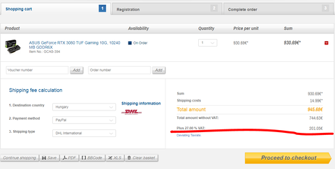 Lehet, hogy naiv kerdes, de ezekrol a nemet oldalakrol rendelt kartyakat meg vamoljak es afat is kell fizetni utanuk, igaz? Tehat mire ide er, addigra egy ~890 euros asus tuf-bol szinten a magyart arakhoz hasonlo aru termek lesz, nem?