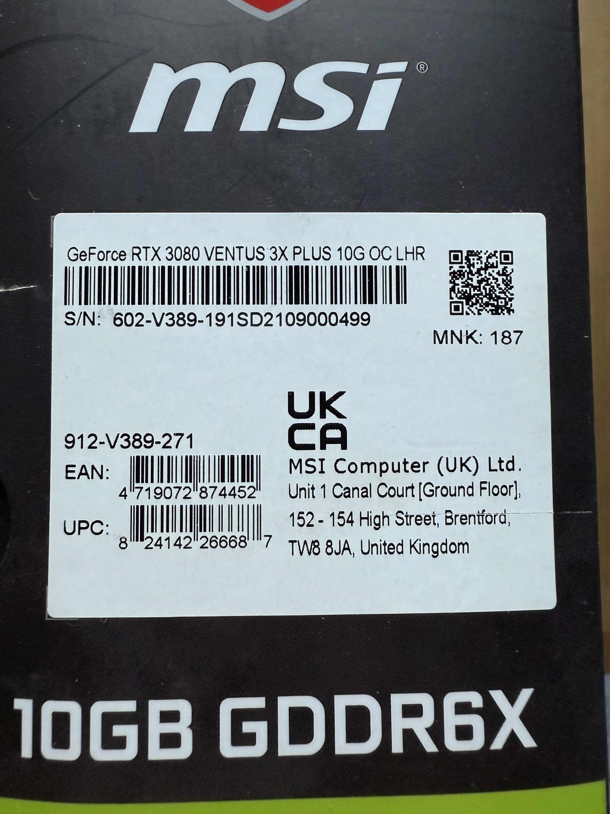 GeForce RTX 3080 VENTUS 3X PLUS 10G OC LHR