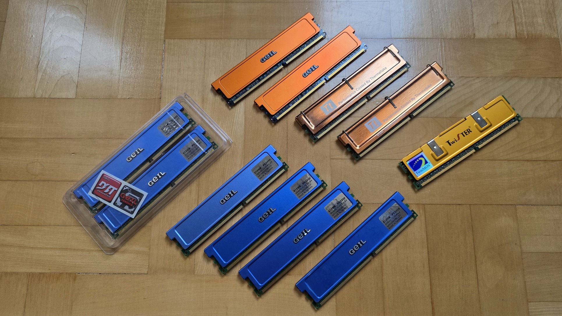 Kék GEIL 6x512Mb DDR400 - 5ezer/dbNarancs GEIL 2x1Gb DDR400 - 10ezer/pár